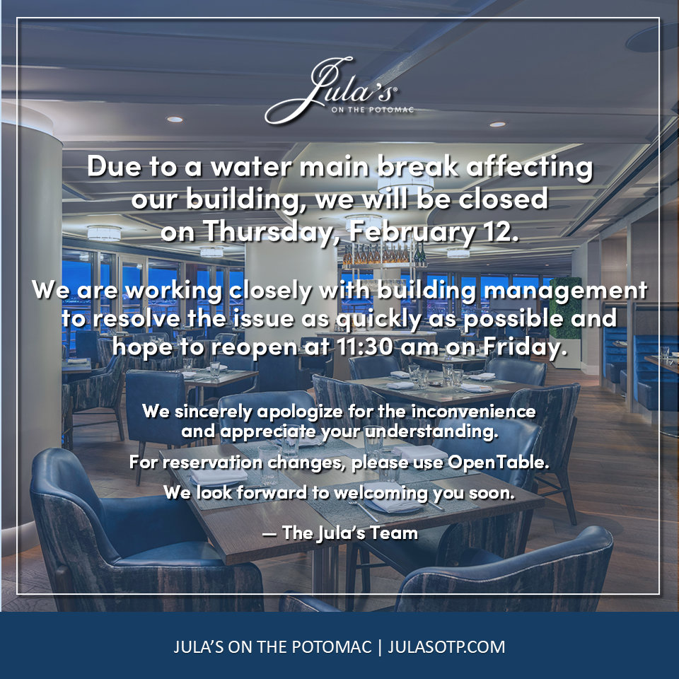 Recognized as the most sought-after Alexandria waterfront restaurant and a standout for fine dining, Jula’s on the Potomac is where exceptional cuisine, impeccable service, and breathtaking views come together—effortlessly, beautifully, and without compromise.