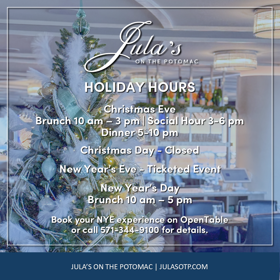 Best known for its spectacular panoramic views, Jula’s on the Potomac is one of the most sought-after dining spots in Metro DC.